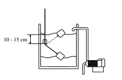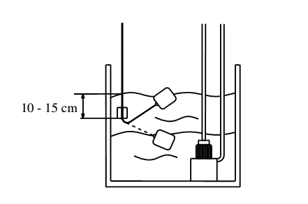 - Thả phao vào bể chứa nước (quả cân cách mặt nước khoảng 10 – 15 cm).